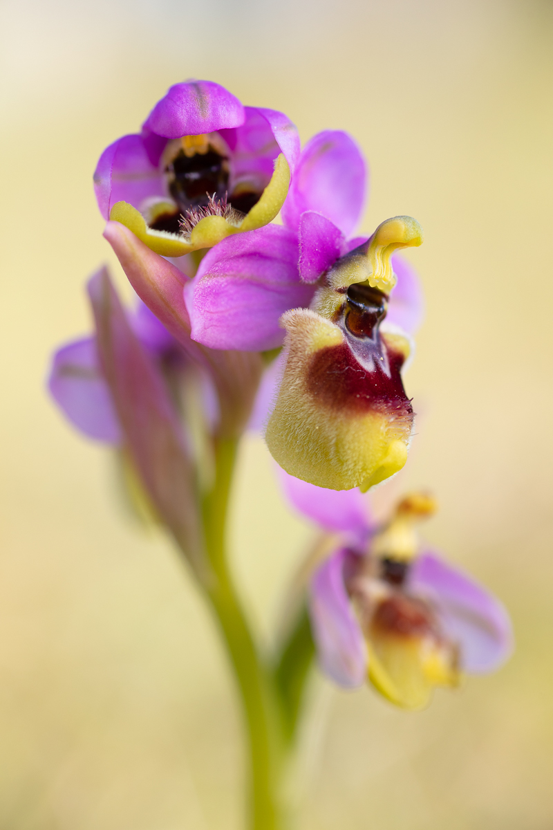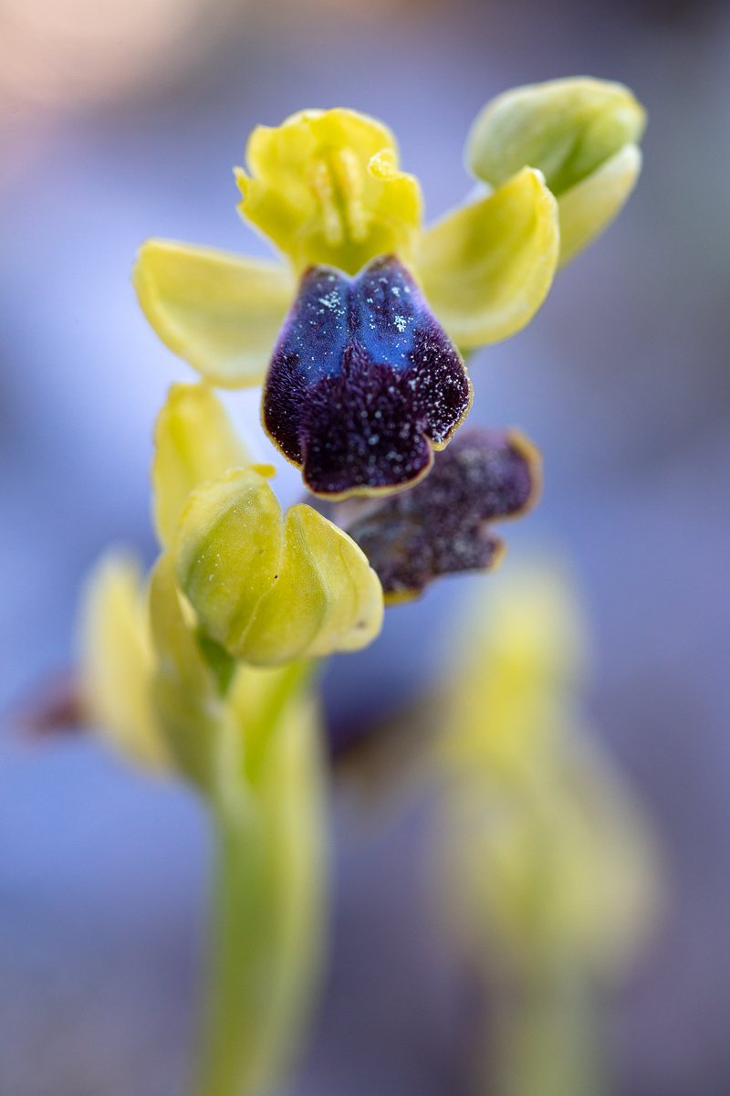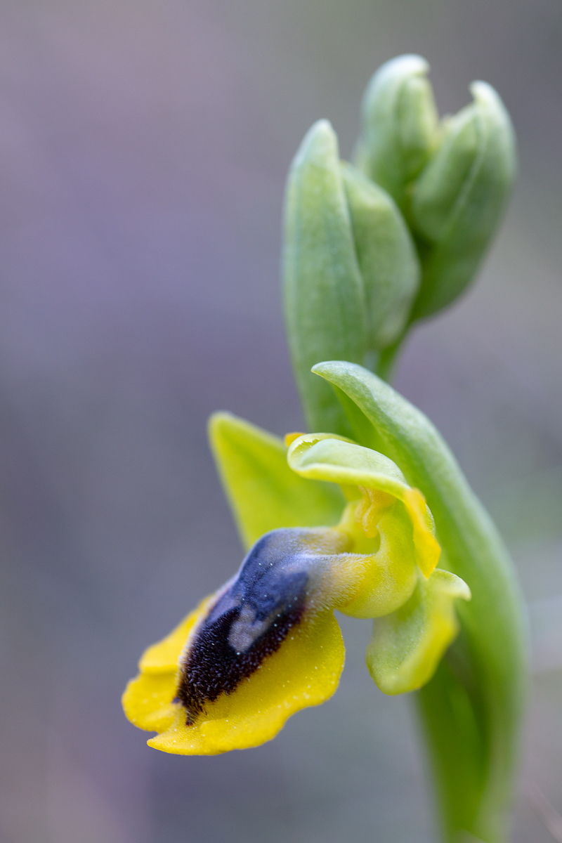 Après cette pause le long du Rhône, c’est au bord de la Grande Bleue que je retrouve deux amis photographes de la région. Nous sommes à l’ouest de Marseille, dans la chaine de l’Estaque. Qu’il est bon de se balader dans cette garrigue de ciste et de romarin, à quelques mètres de la mer. Très vite, nous trouvons de belles orchidées : Ophrys passionis, Ophrys aurelia et au bout d’un moment, l’hybride naturel entre ces deux espèces. Puis c’est le tour des premiers Ophrys lutea qui démarrent tout juste. Mes deux compères n’avaient pas idée des richesses insoupçonnées de la garrigue, nous photographions ces fleurs sous toutes les coutures!