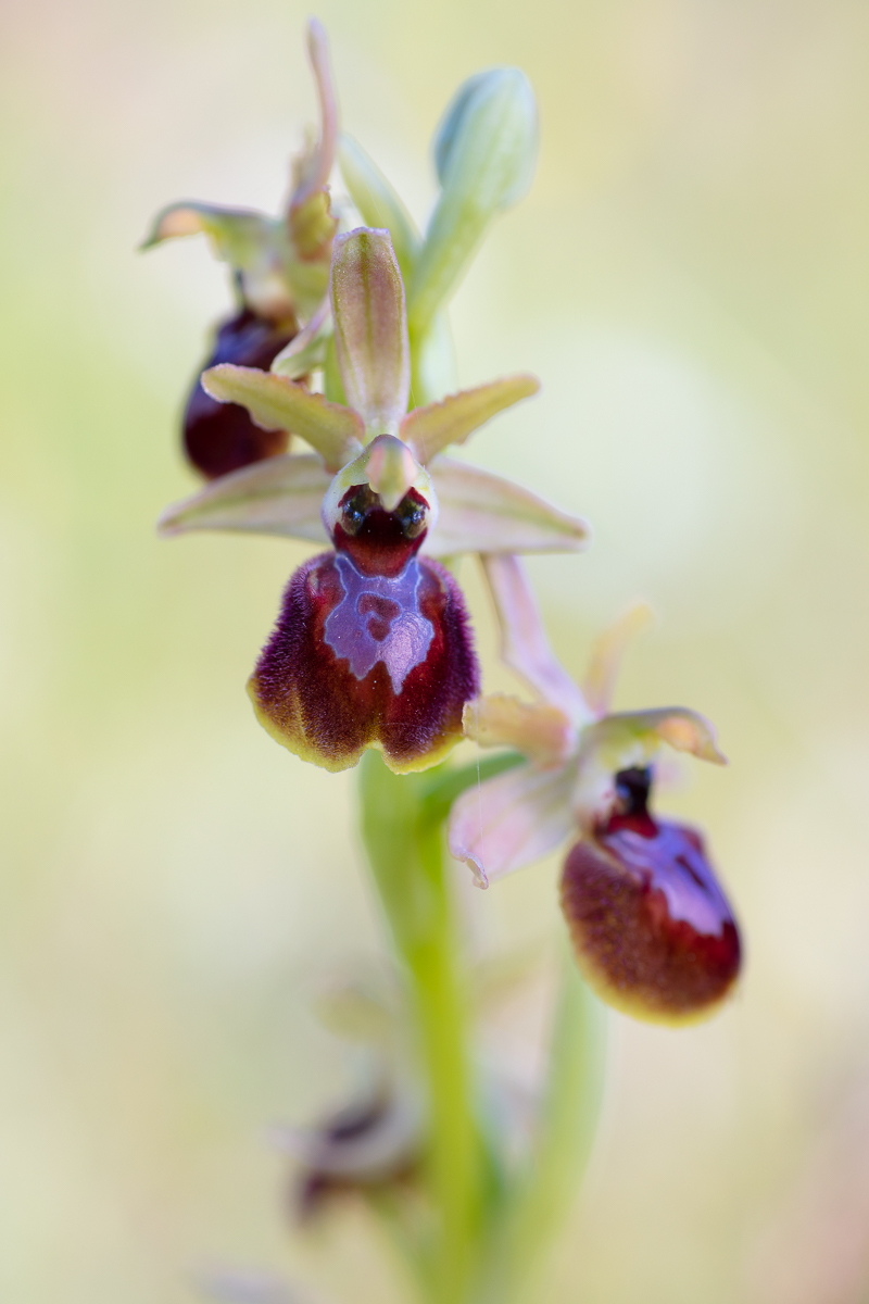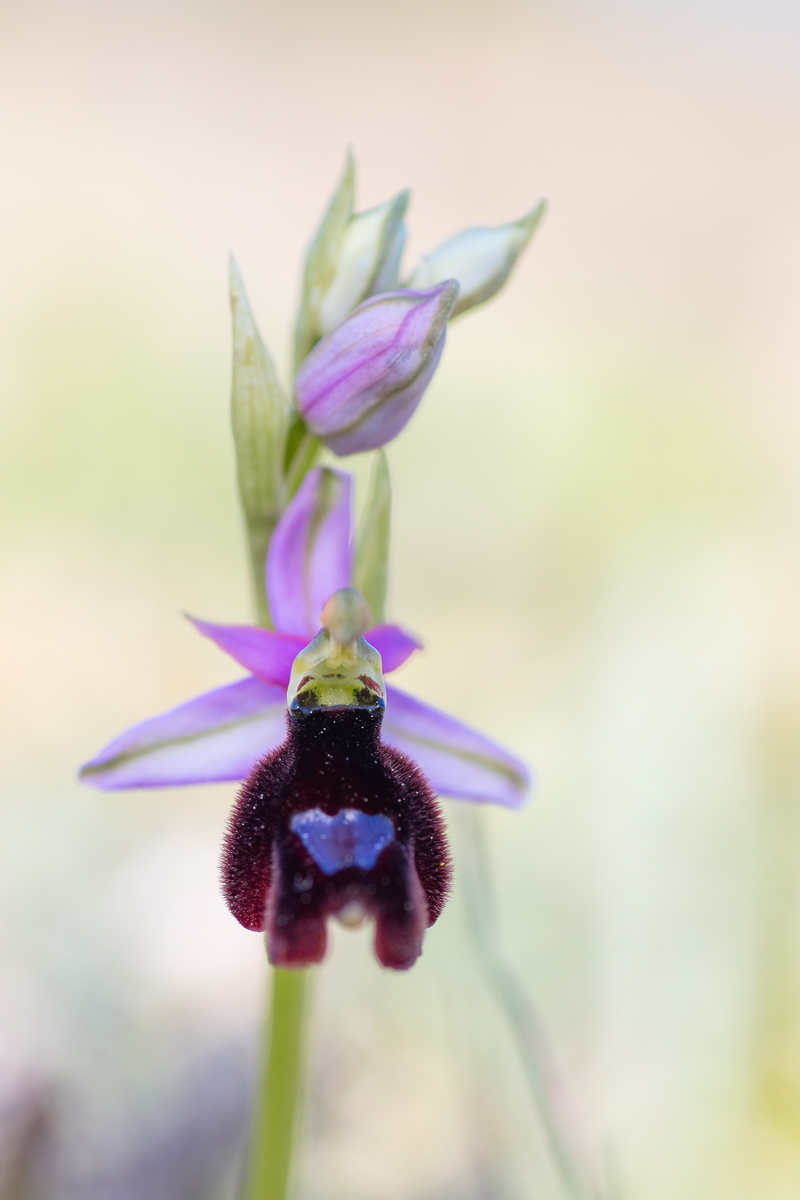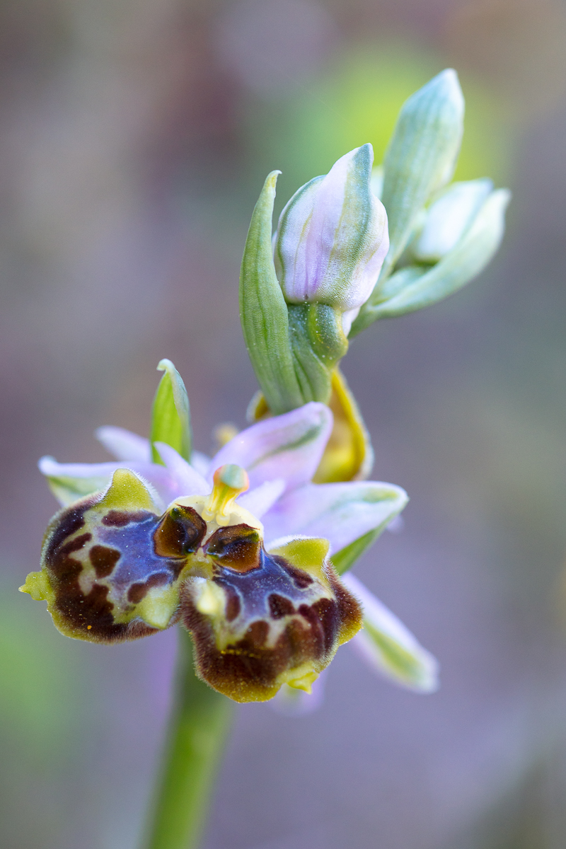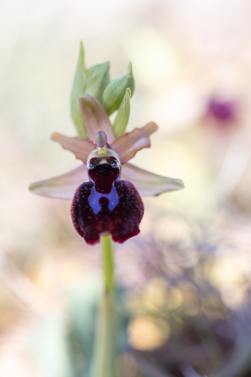 Lundi 29 mars, je quitte « mes » Bauges et la Savoie pour rejoindre la vallée du Rhône. Très vite, dans ce couloir climatique, l’influence méditerranéenne se fait sentir et dès mon premier arrêt au nord de Montélimar, j’y suis, ça hume bon le thym! C’est sur les bords pourtant canalisés et artificialisés du Rhône, que j’admire mes premières orchidées, et pas des moindres : dans ce spot connu des initiés, fleurit un unique exemplaire d’une espèce qui d’ordinaire pousse bien plus au sud. En France, Ophrys tenthredinifera est en limite nord de répartition et se rencontre dans quelques coins du pourtour méditerranéen. Alors croiser cette magnifique fleur en Rhône-Alpes, je n’en reviens pas!