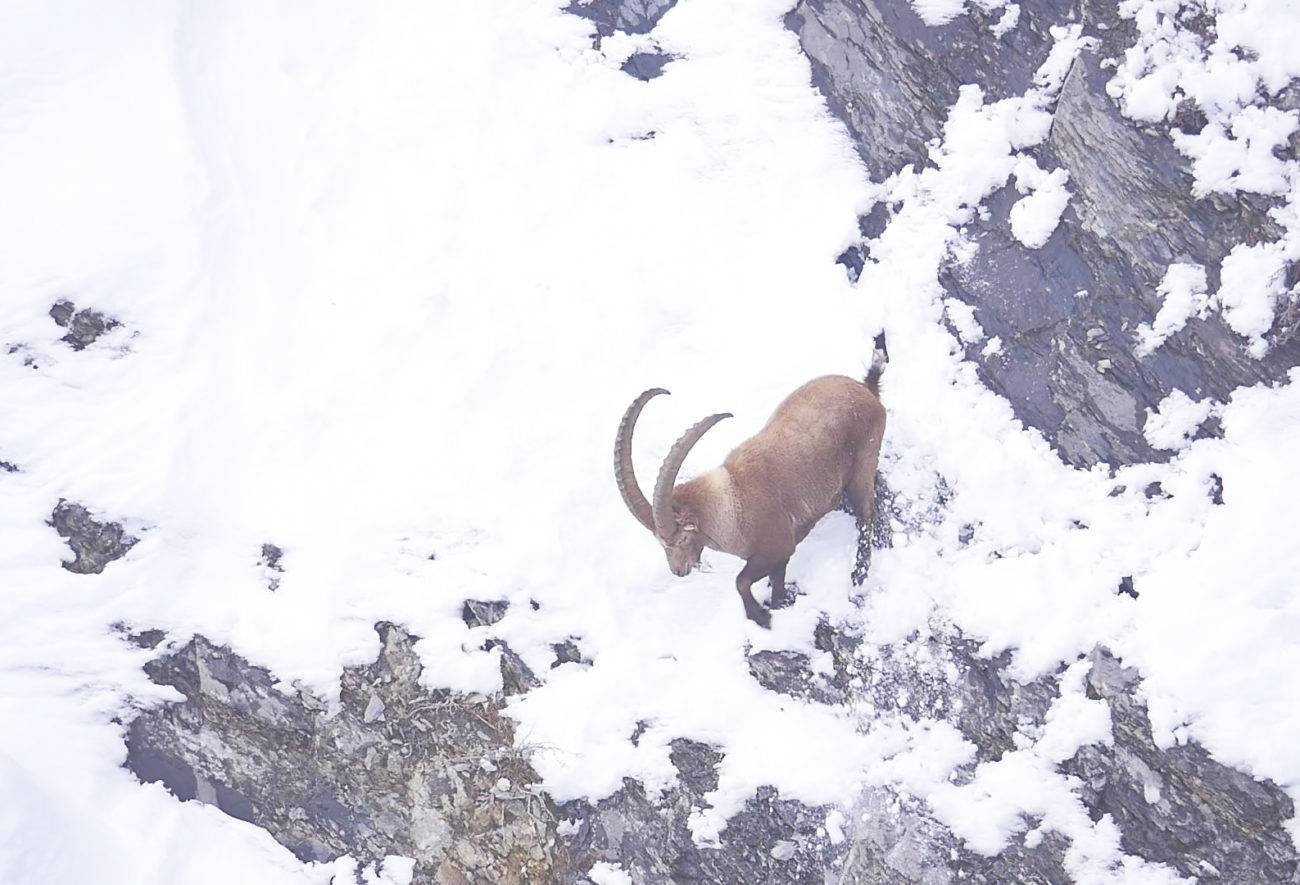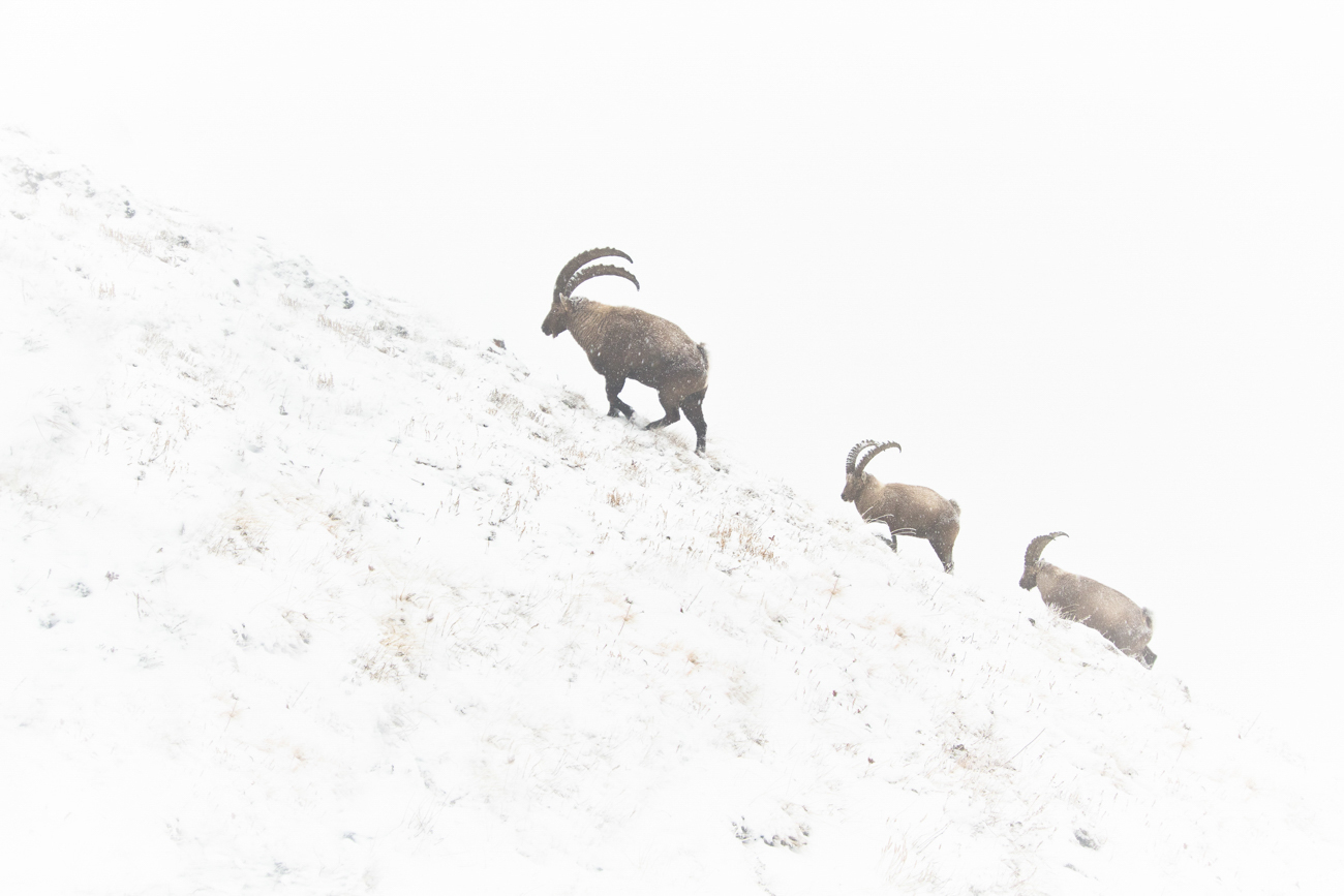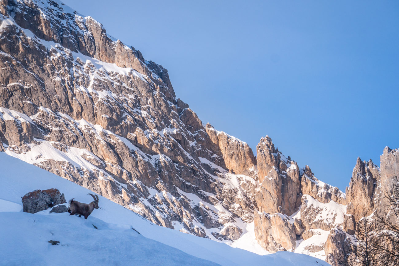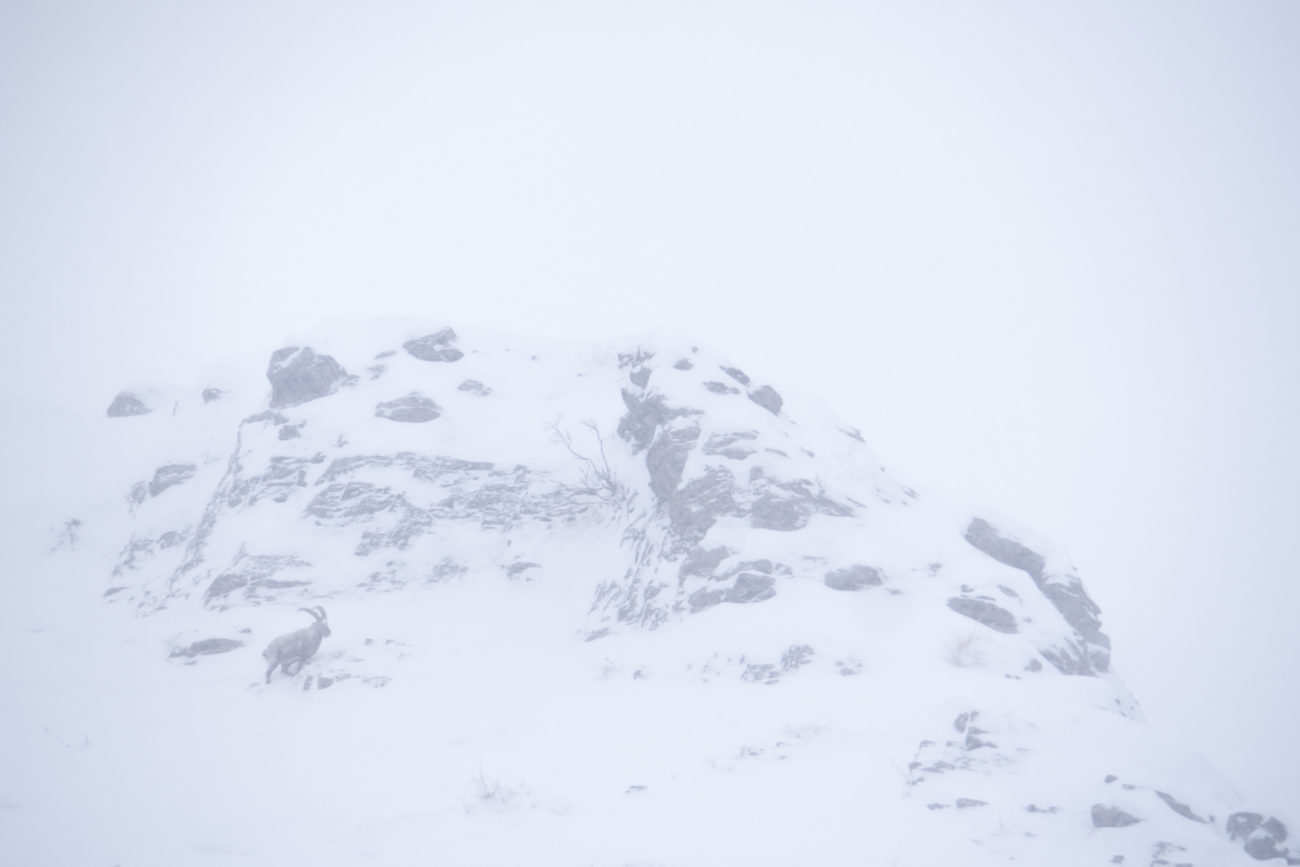 Évidemment la priorité pour les bouquetins dans ces conditions hivernales était avant tout de se nourrir mais l’ambiance était vraiment époustouflante.