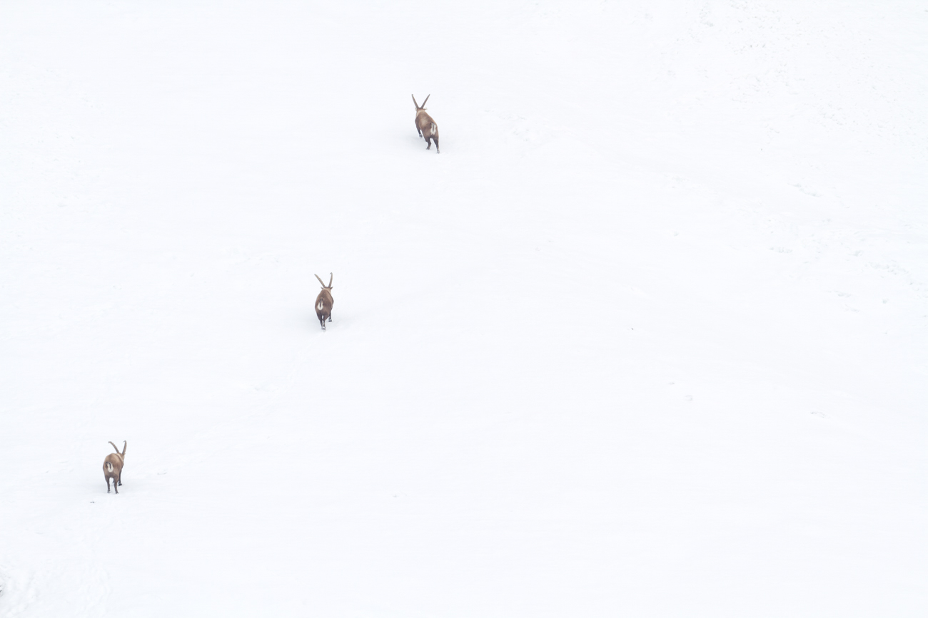 Évidemment la priorité pour les bouquetins dans ces conditions hivernales était avant tout de se nourrir mais l’ambiance était vraiment époustouflante.